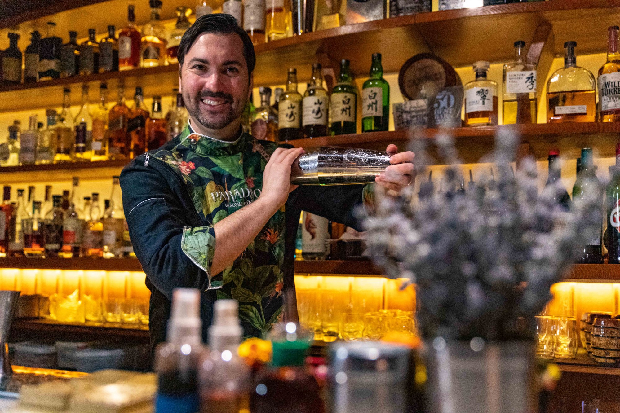 PASO 1: Remover todos los ingredientes y servirlos enseguida en una copa martini. Terminar con un spray de flor de naranja por encima.