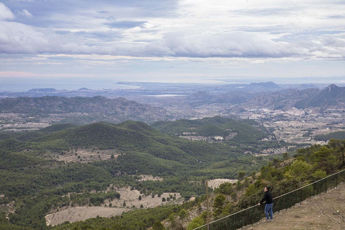 En los días despejados, la panorámica se completa en el horizonte con el perfil de la bahía alicantina, incluyendo el faro de Santa Pola y la Isla de Tabarca. Estamos en la cima del Alto de la Carrasqueta, a 1.100 metros de altitud sobre el nivel del mar. Este puerto de montaña, incluido en la red del Camino de Santiago, es uno de los que deberá superar el pelotón de figuras enmalladas de la Vuelta Ciclista a España 2021.