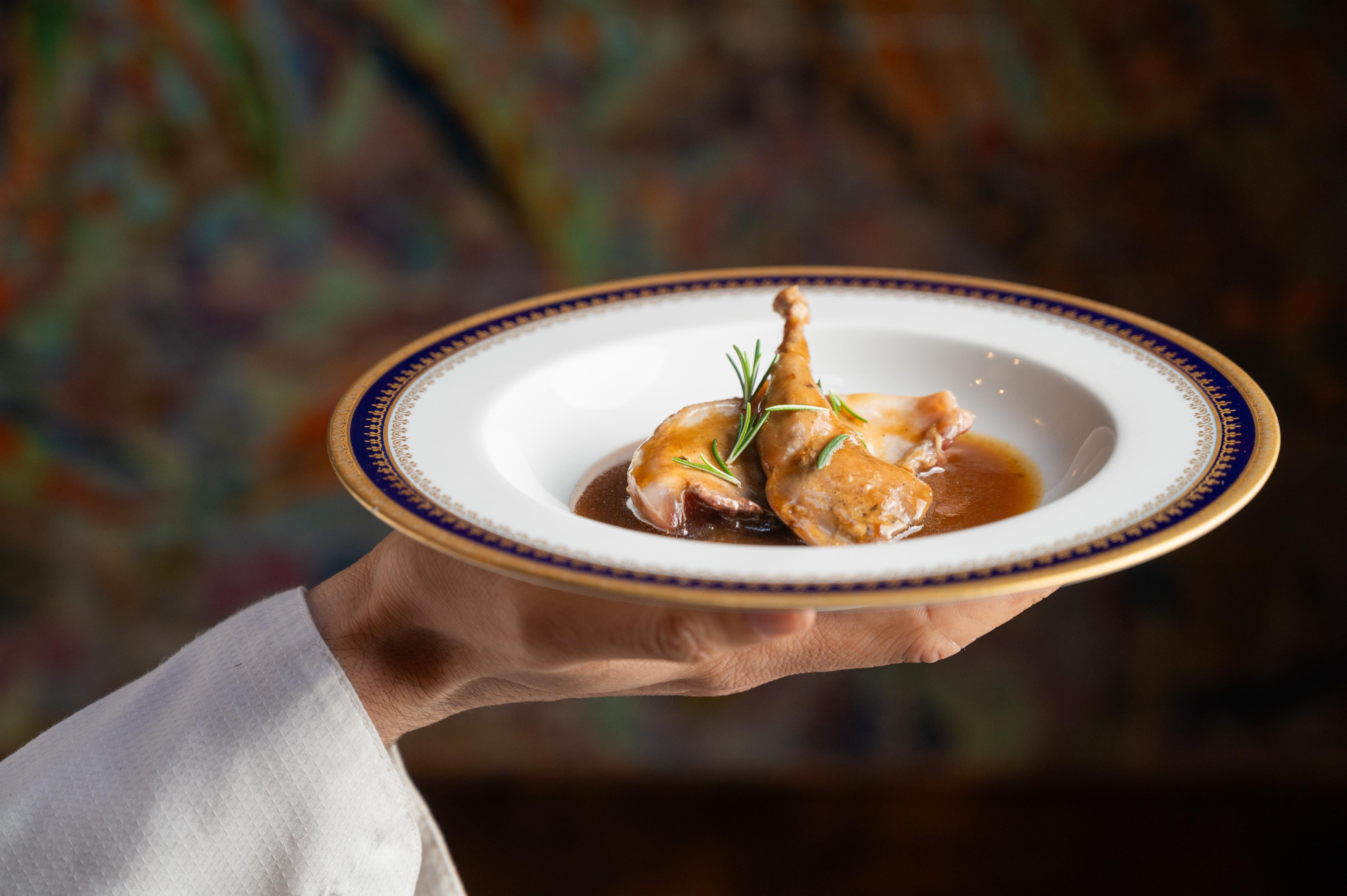 Abovedado, artesonado, tradicional, como si fuera una prolongación de la monumental ciudad, el restaurante Adolfo apuesta por la cocina del territorio que parte del producto de la tierra: perdiz, cordero, callos, verduras de temporada o caza.