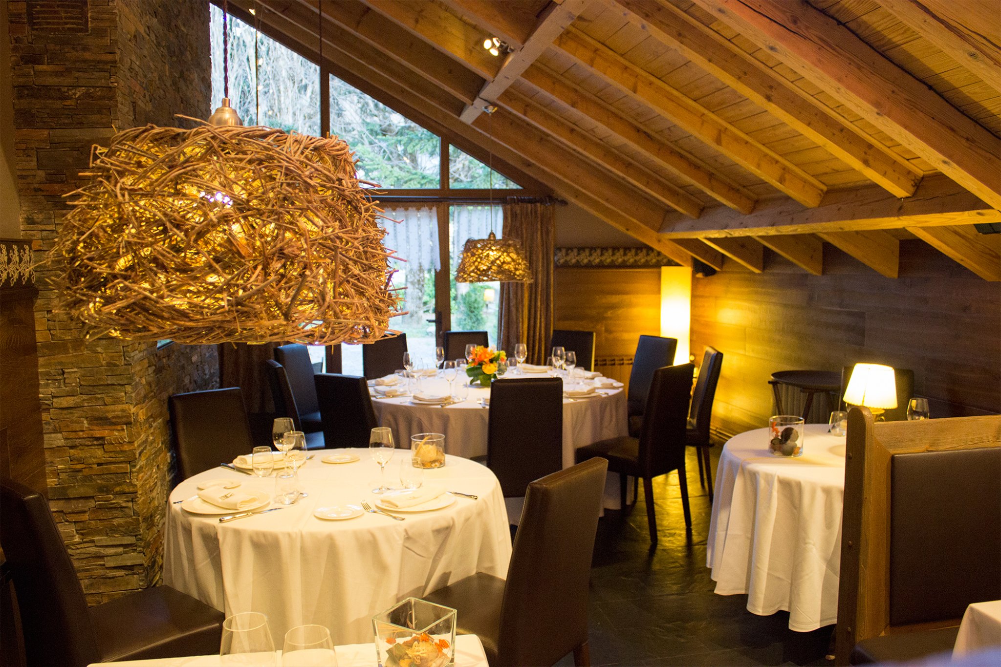Bajo la dirección de Andreu Vidal, su restaurante propone una cocina de montaña actualizada, basada en el producto pirenaico. Setas, trucha, caza y carnes de proximidad conviven con elaboraciones delicadas y salsas de fondo clásico. No faltan los arroces melosos, los guisos de cuchara, ni los postres caseros que homenajean la tradición local. En su acogedor comedor de madera, la calidez acompaña cada bocado.