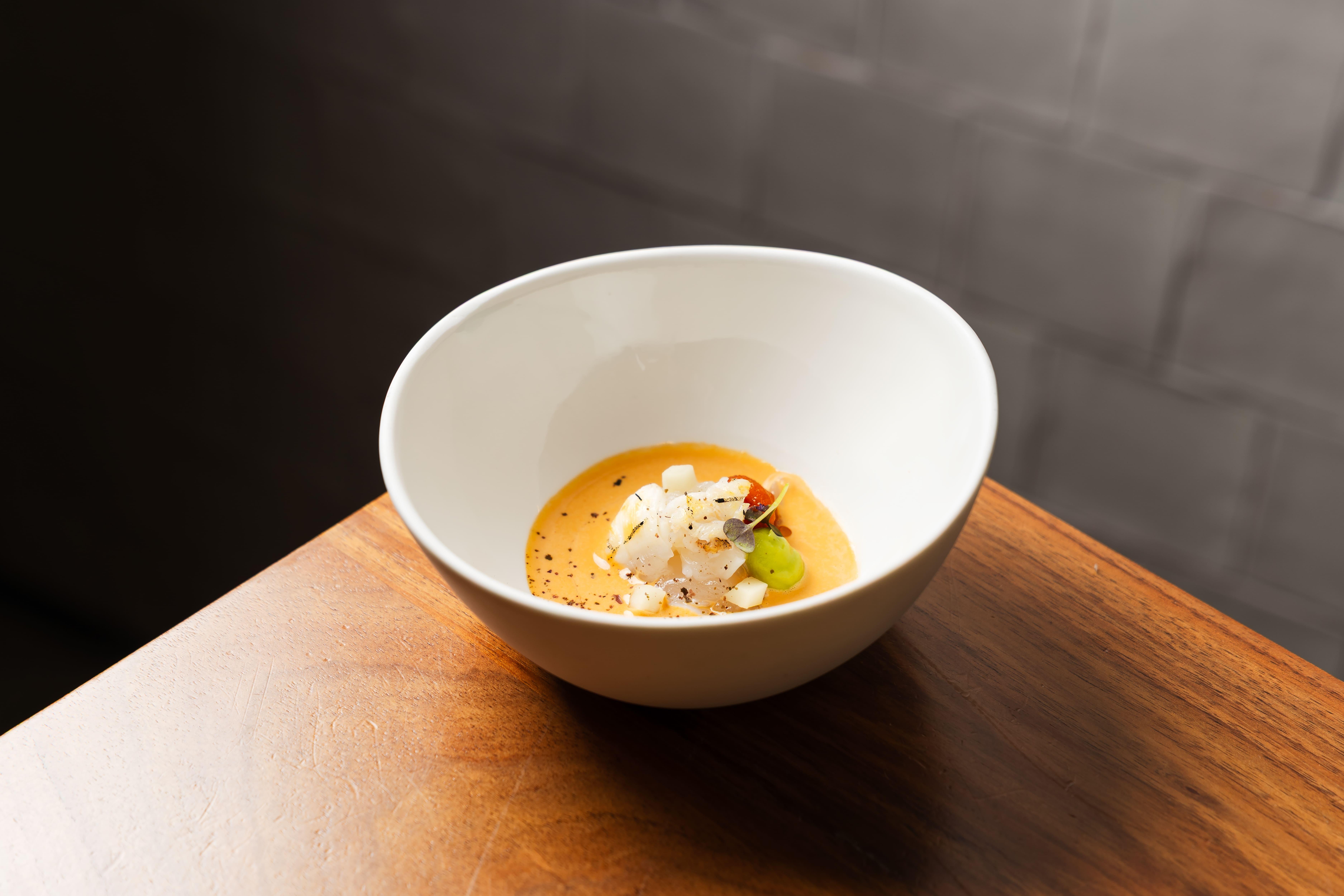 El chef domina la brasa y destaca por su creatividad y el uso de técnicas modernas para reinterpretar sabores tradicionales en platos como la tortilla suflé y postres que incorporan toques exóticos. El sello andaluz rubrica no obstante una carta que cambia a diario y concede protagonismo a preparaciones con pescado y marisco, tanto que no ha faltado ni un ‘tomahawk’ de rodaballo.