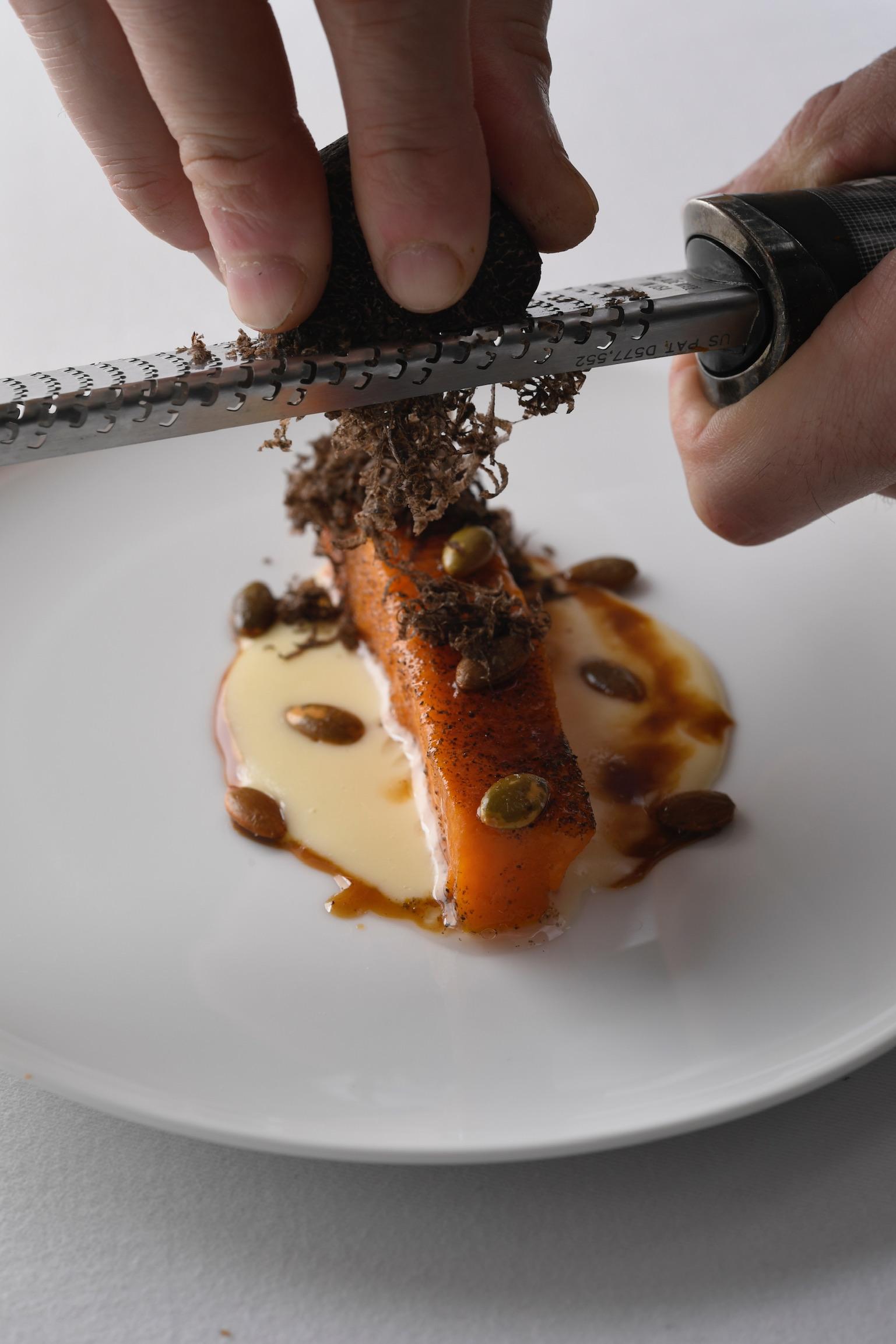 Romero desarrolla una cocina de autor pegada a la temporada con creaciones para “sucar- lent”, mojar lento el pan hasta no dejar ni gota. Entre sus platos emblema, destacan la royal de ceps con erizo de mar y el tuétano con caviar que homenajea a elBulli, aunque el chef anima a poner caviar Beluga para completar también otras elecciones. Le gusta que el mobiliario cuente su propia historia, por eso es reciclado y cuenta piezas restauradas.