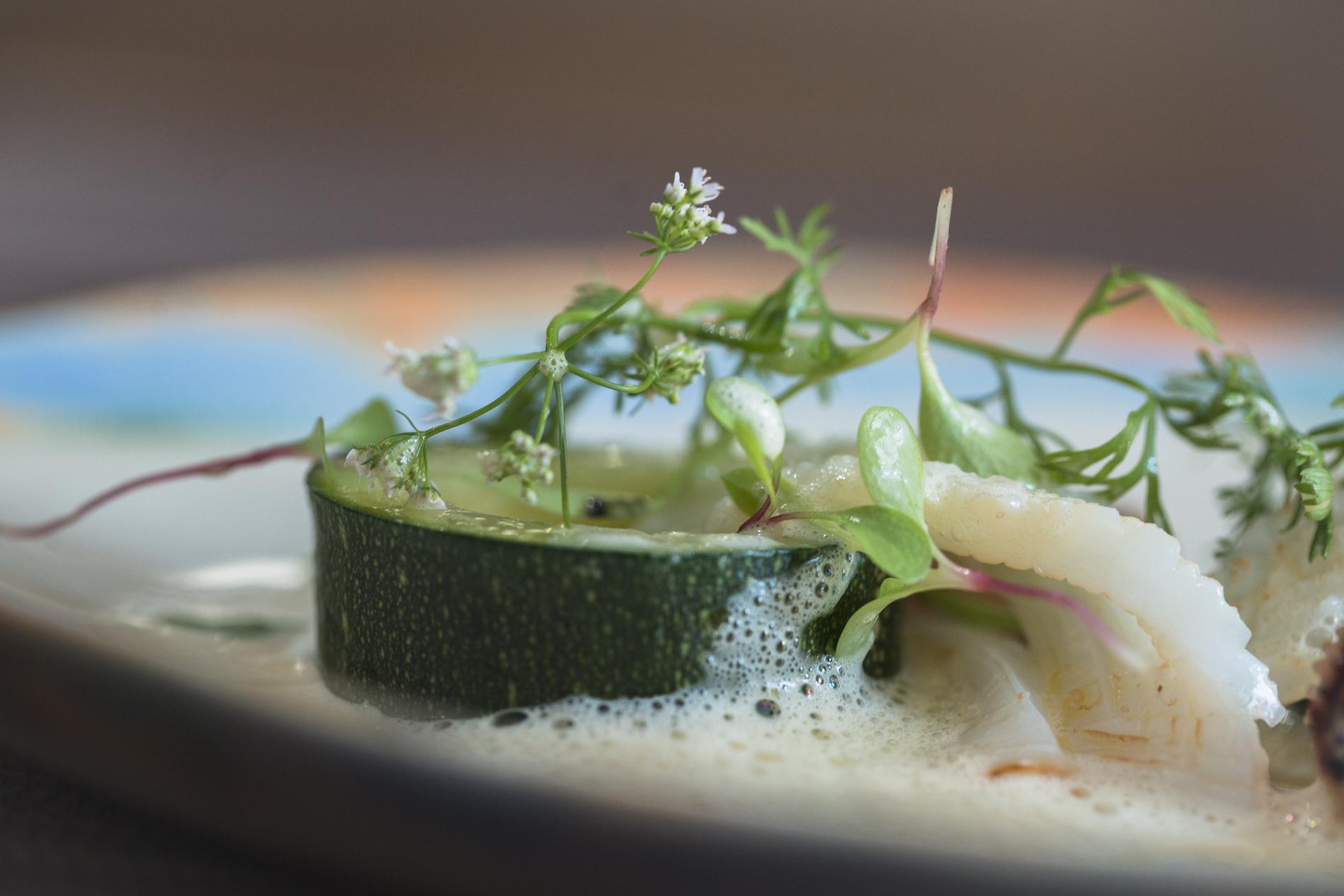 Él es japonés pero su cocina es mediterránea, generando un cruce de caminos que persigue el sabor sin atajos ni artificios. Lo hace con un menú cerrado y presencia vegetal, así puedes comer pez limón con kabu y yuzu, topinambur con gamba roja, anguila con arroz de acelgas, berberechos con zanahorias y cerdo con salsifí.