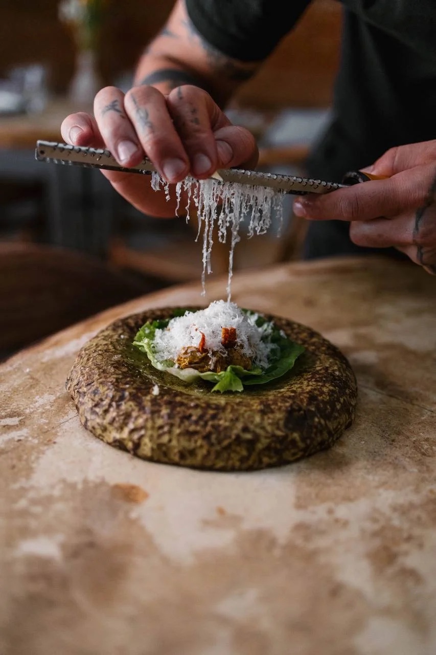 Su carta se articula en tres vertientes bien definidas: una cocina de mercado, centrada en la esencia y el respeto absoluto al producto; una línea más elaborada, con clara vocación gastronómica sin renunciar a sabores reconocibles; y una propuesta de fusión que abre la puerta a técnicas e ingredientes de otras latitudes.